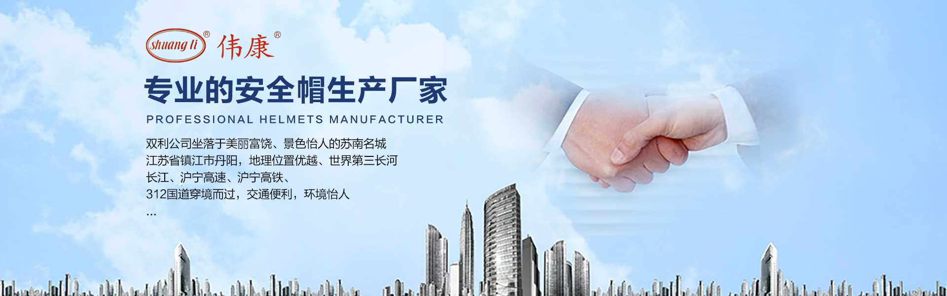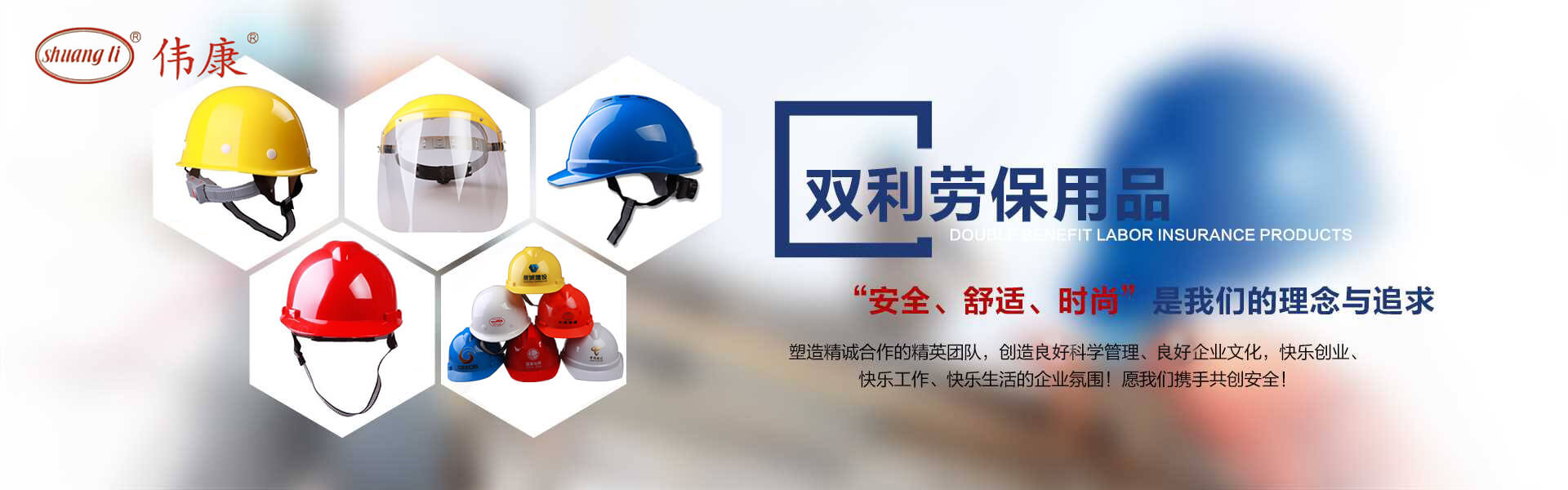 專業(yè)的安全帽生產(chǎn)廠家-鎮(zhèn)江市雙利勞保用品有限公司。雙利公司坐落于美麗富饒、景色怡人的蘇南名城——江蘇省鎮(zhèn)江市丹陽,地理位置優(yōu)越、世界第三長河——長江、滬寧高速、滬寧高鐵、312國道穿境而過,交通便利,環(huán)境怡人。鎮(zhèn)江市雙利勞保用品有限公司是鎮(zhèn)江市第一家創(chuàng)辦的專業(yè)生產(chǎn)安全帽的生產(chǎn)商,并申請擁有自己的品牌:shuangli牌和偉康牌,立足致力于安全帽研究,從原料入手研發(fā)出韌性更強(qiáng)、抗沖力更高的特點(diǎn)。公司根據(jù)實(shí)際運(yùn)行需要建立高效、務(wù)實(shí)、有序的組織機(jī)構(gòu),實(shí)現(xiàn)現(xiàn)代化公司管理。同時(shí)公司具備專業(yè)完善的生產(chǎn)設(shè)備和成熟的安全帽生產(chǎn)工藝及先進(jìn)的檢測儀器,為產(chǎn)品的質(zhì)量奠定了堅(jiān)實(shí)的基礎(chǔ),各項(xiàng)技術(shù)指標(biāo)均達(dá)到國家《GB2811-2019》《安全帽》標(biāo)準(zhǔn)。產(chǎn)品廣泛適用于建筑、林業(yè)、石油、石化、造船、港口、冶金等行業(yè)。 “安全、舒適、時(shí)尚”是我們的理念與追求,塑造精誠合作的精英團(tuán)隊(duì),創(chuàng)造科學(xué)管理、良好的企業(yè)文化,快樂創(chuàng)業(yè)、快樂工作、快樂生活的企業(yè)氛圍!愿我們攜手共創(chuàng)安全!